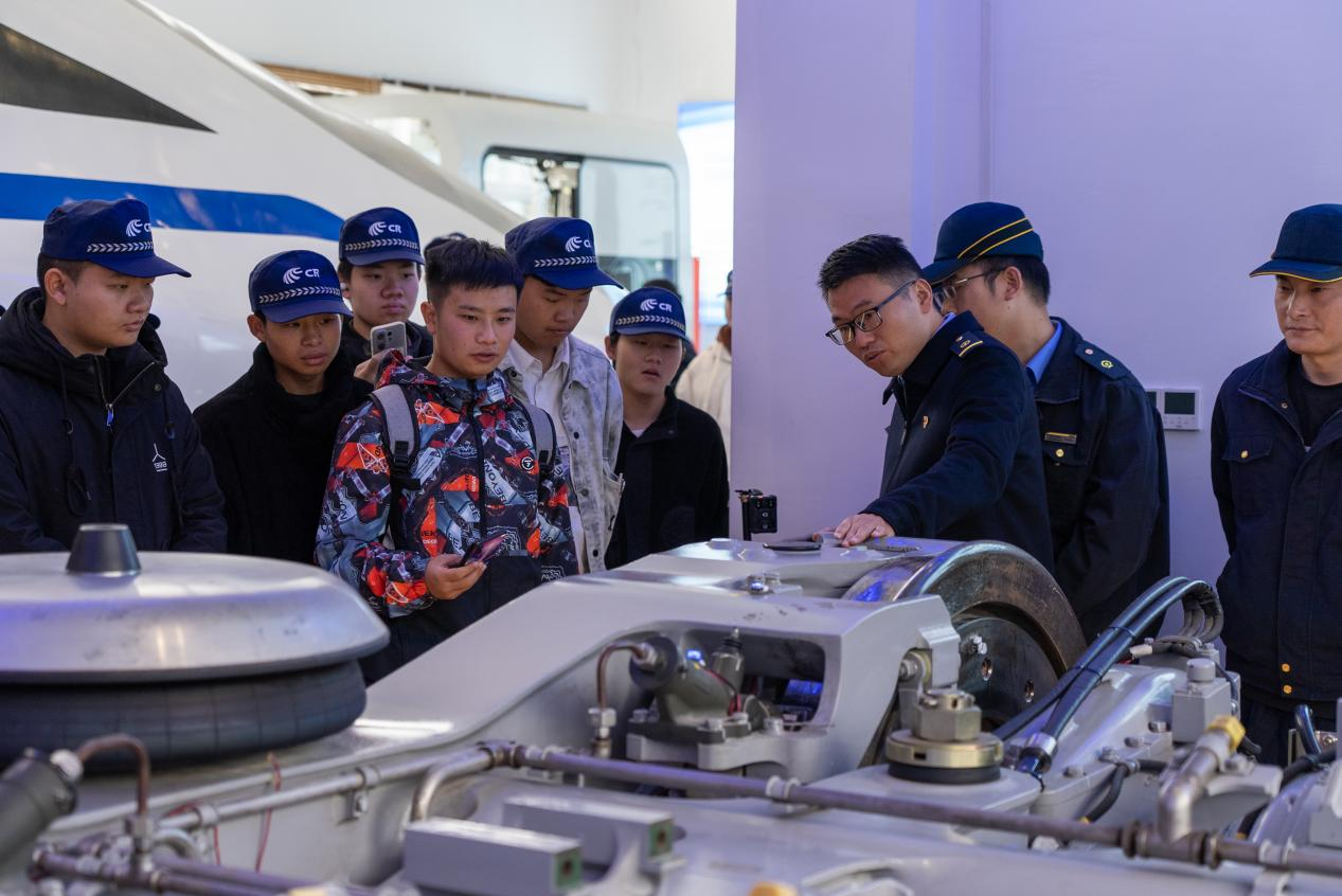 多元实践场景深度融合,拓宽专业视野与职业认知。本次实习聚焦智能运维、运营管理、高端装备制造等轨道交通产业核心领域,构建了系统化、场景化的学习路径。在贵阳车辆段动车所,学生通过专题培训深入理解高铁智能运维体系,实地观摩动车组检修流程,并与企业技术骨干交流故障诊断与数据分析等关键技术;在兴筑路地铁站,学生参与客运组织、设备操作及应急演练,强化了对运营安全与服务质量的理解;在汇通华城工业园,学生走进节能控制系统研发生产线,与技术专家探讨智能装备创新路径,深刻体会到科技驱动产业升级的实践逻辑。多元化的实习内容,帮助学生跳出课本局限,在真实场景中构建起专业知识与岗位能力的联结。