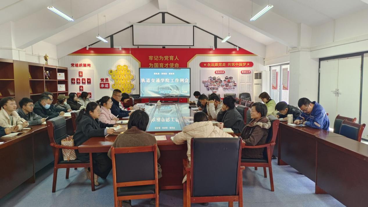 2025年12月12日,轨道交通学院召开工作例会,教研室主任郑锂主持会议,全院教职工参加。