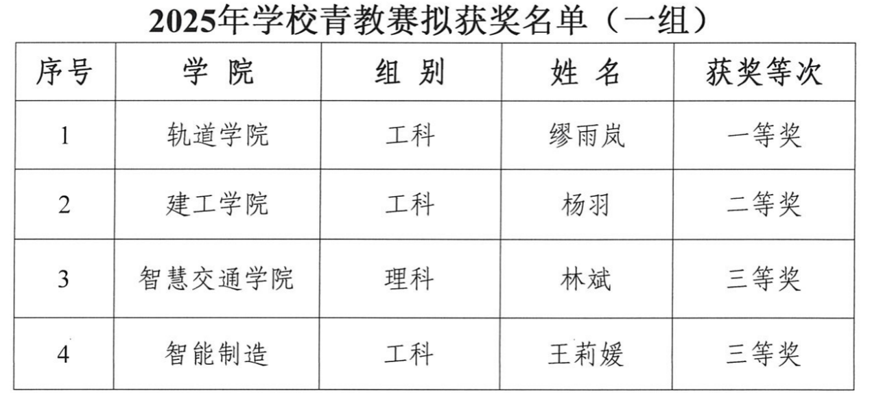 轨道交通学院在学校组织的《2025年度校级优质课程评选》与《2025年度学校教师教学创新大赛和青年教师教学竞赛》中,收获多项荣誉。