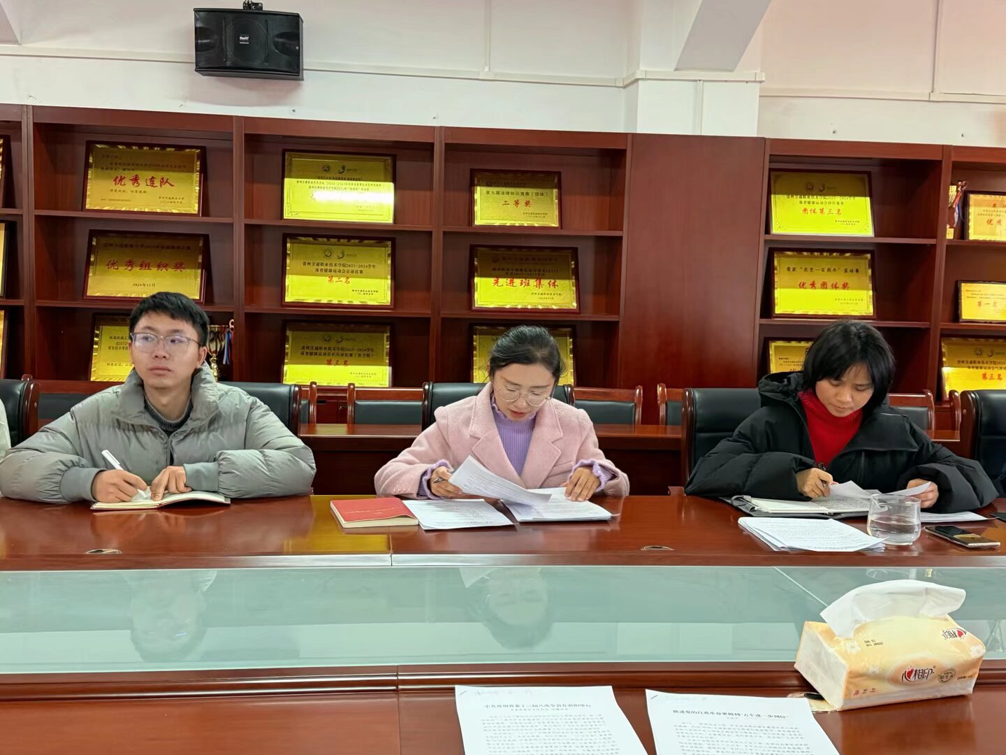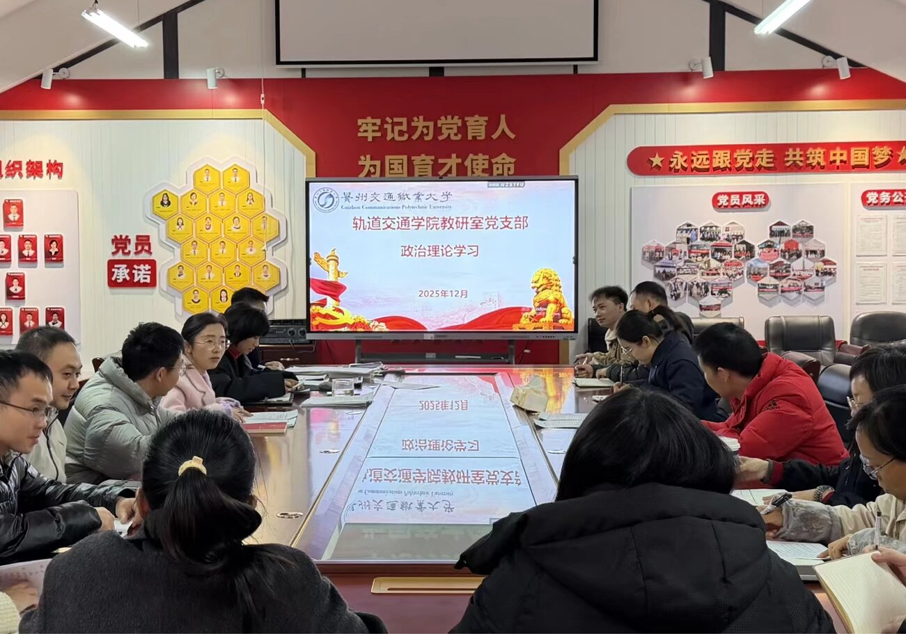 2025年12月18日中午,轨道交通学院教研室党支部召开12月份政治理论学习党员大会,应到党员12人,因事因病请假1人,实到党员11人。