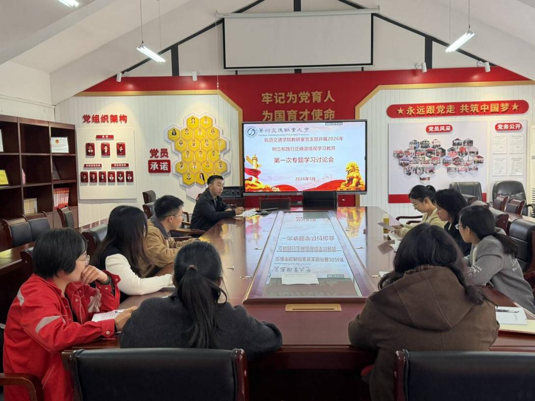 2026年3月31日,轨道交通学院教研室党支部在六楼会议室召开2026年树立和践行正确政绩观学习教育第一次专题学习讨论会。