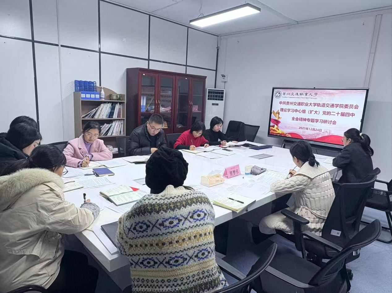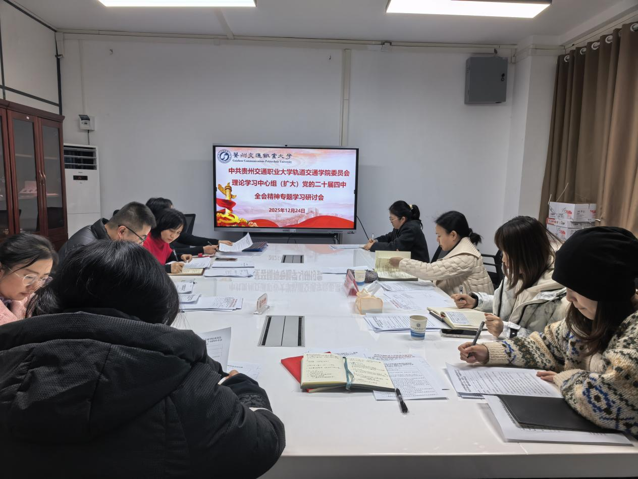 12月24日下午,中共贵州交通职业大学轨道交通学院委员会召开理论学习中心组(扩大)专题学习研讨会,会议由学院党委书记杨涛主持,学院党委领导班子成员、全体副科级以上干部参会。学校党委委员、副校长贺梦依列席指导。