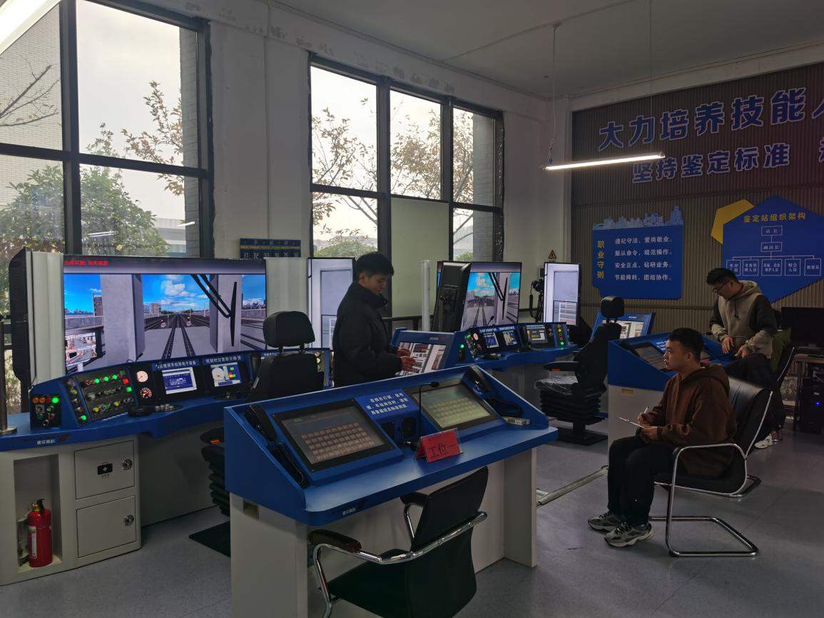 模拟驾驶实训室占地面积120平方米,主要的实训设备有司机操纵台、电气屏柜模拟台、行调控制台、车站值班员控制台、安全门就地控制盒等,设备价值258.8万元,工位数12个。主要承担城市轨道交通运营管理、城市轨道交通机电技术、城市轨道交通通信信号专业所开设的《电动客车驾驶训练》、《城市轨道交通概论》等课程的实训任务。