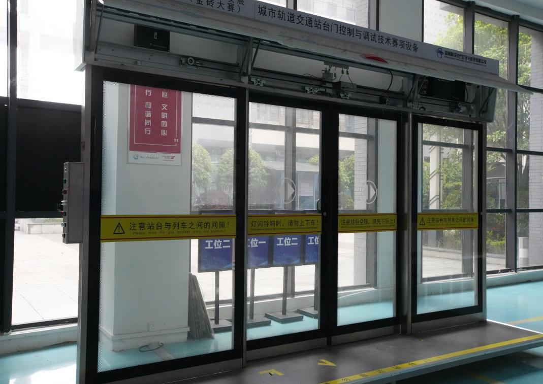 站台门维检修实训区占地面积170平方米,主要的实训设备有滑动门维修实训单元、屏蔽门中央接口盘PSC柜、集成式控制器、PSA监控系统、城市轨道交通站台门控制与调试技术实训平台等,设备价值150.6万元,工位数10个。主要承担城市轨道交通运营管理、城市轨道交通机电技术、城市轨道交通通信信号专业所开设的《城市轨道交通站台门系统运行与维护技术》、《城市轨道交通车站机电设备》课程的实训任务。